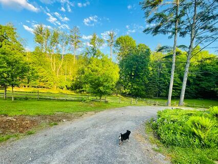 She raised her head looking up at the lush field across from where she lived and as she was daydreaming about her sweet pup,