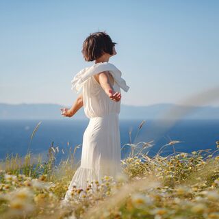 Let's start by taking our first big deep breath in as if you were smelling a beautiful flower and then slowly blowing it out as if you were blowing bubbles away from you.