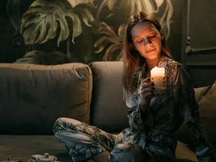 Con la luz apagada y en una posición cómoda,