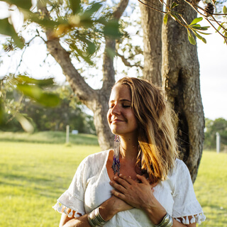 Place one hand on your heart and one on your belly.