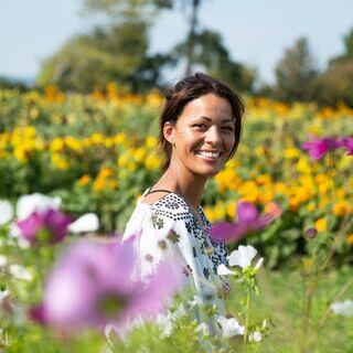 Wild flowers sway in the breeze and amongst them a butterfly appears.