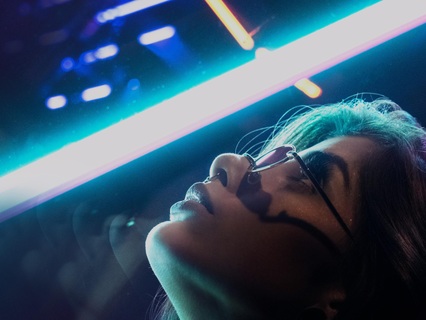 Where her coat shimmered under neon lights and her laughter rose above the pulsing music.