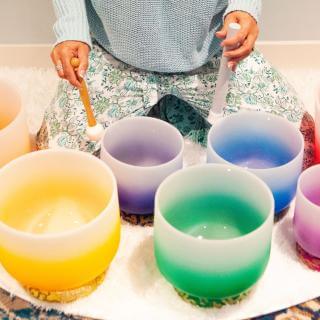 Imagine the vibrations of the quartz crystal bowls resonating,