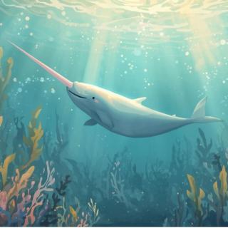Aqua swims over to a smooth stone and brushes it gently with her tail.