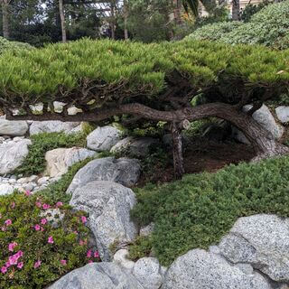 With sturdy bark and that are so tall that it seems as if the tops of their heads and their branches are reaching up.