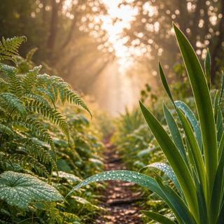 Roots of light gently rise from the ground and wrap softly around your feet,
