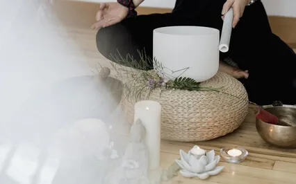 Méditation et bol de cristal pour un précieux lâcher prise