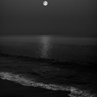 Thin and silver against the darkening sky.