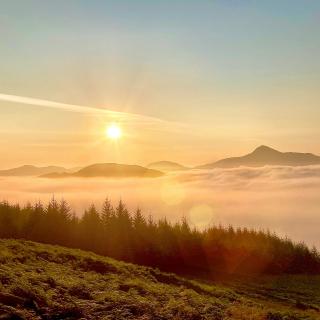 Imagine yourself approaching a small stone bothy as dusk falls over the hills.