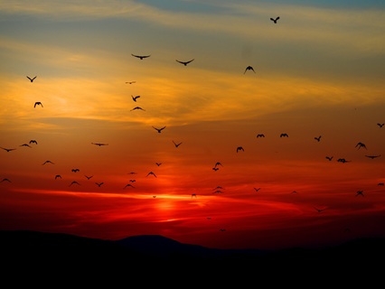 They burst into the fading sunlight,
