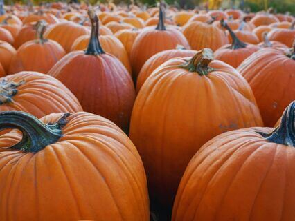 And sharing stories as they walk between the sea of orange pumpkins,