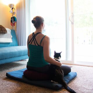 You can allow your eyes to fall closed or leave your eyes open with a soft gaze on the floor a few feet in front of you.