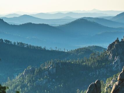 Visualize yourself lying on a rock at the peak of a mountain,