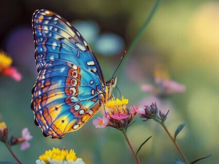 Framed by wildflowers and butterflies.
