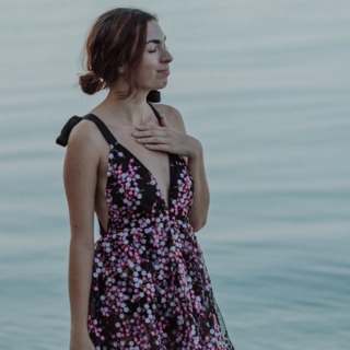 Perhaps placing one hand on your womb,