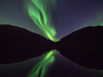 The northern lights dancing in the sky.