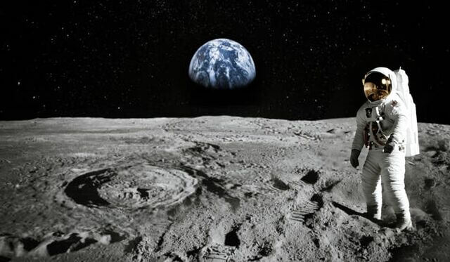 Estás en la superficie lunar con tu nave averiada y desde ahí puedes ver la tierra con perspectiva.
