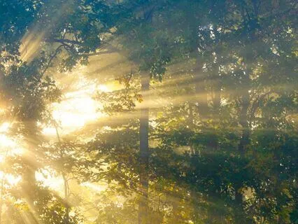 Die Morgensonne wird Schritt für Schritt stärker und stärker und wirft sanfte Strahlen durch die Baumkronen,