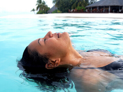 With the feeling of the warmth of the sun against our skin on top of our body and feeling the cool contrast of the water underneath us just being held in this space and feeling the rise and fall of the ocean waves in the same rhythm with our breath as we breathe in relaxation and exhaling tension.