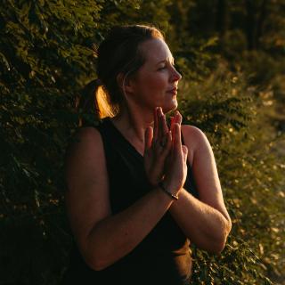 You're bringing your hands together maybe at the heart stacked or piled.
