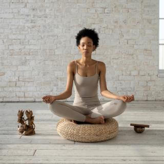 Closing your eyes gently and settling your body into a comfortable position.