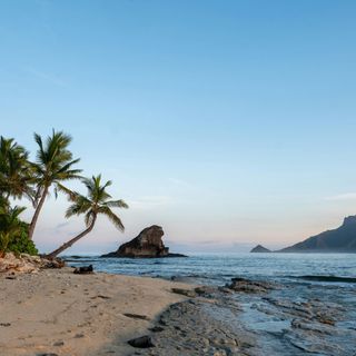 An ocean so vast that it merges with the expansive sky above.