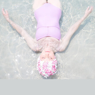She swims joyfully through the now calm waters,