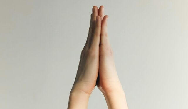Mantenha as mãos unidas no peito.