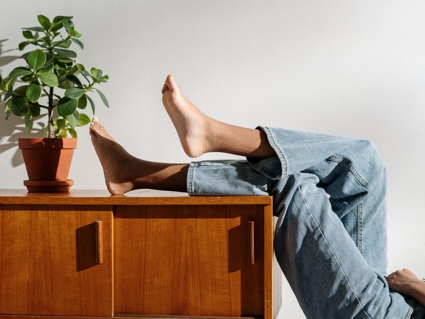 Busque estar numa posição confortável,
