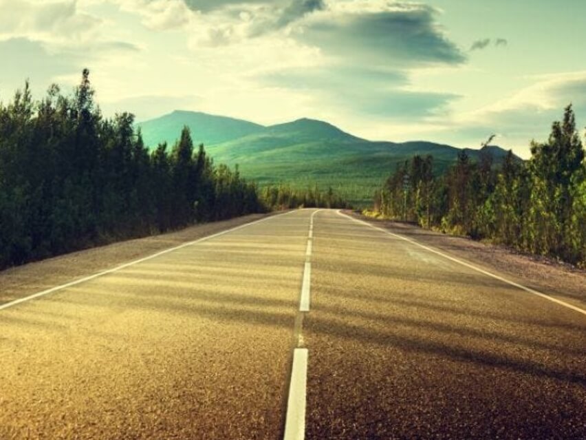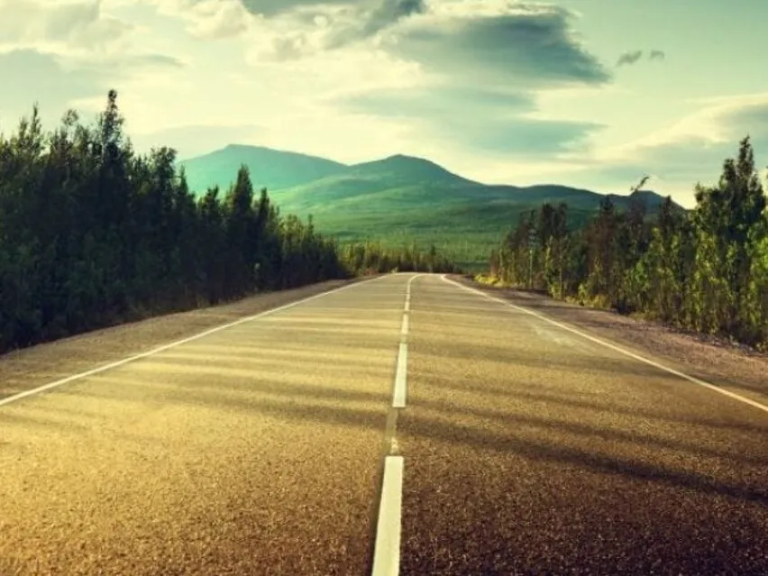 Aqui há só a estrada antes da curva,
