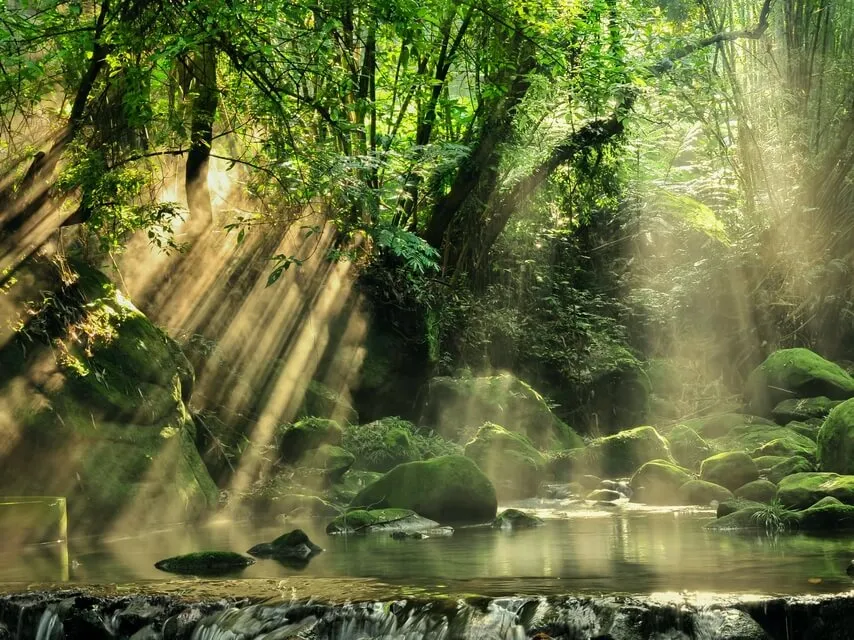 Talvez seja possível observar os raios do sol entrando neste ambiente verde e chegando até o seu rosto,