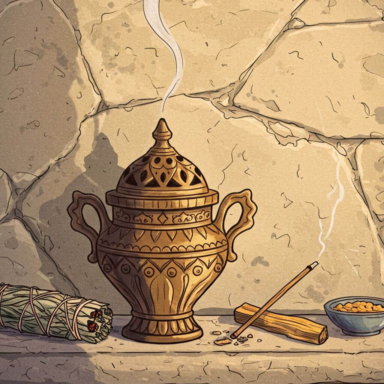 Once you have chosen a type of incense to work with, you will want to consider which form of it might work best for you. This lesson looks at loose incense, cones, sticks, dried herbs, and smudge sticks, as well as different types of vessels or burners.