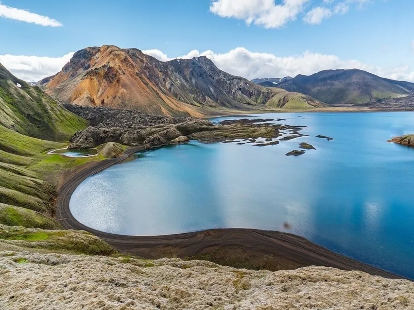Agora você olha para baixo e vê um lago,