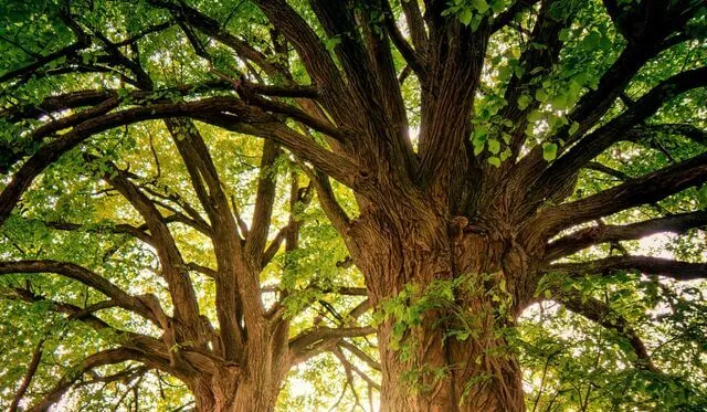 De tão alta que é uma árvore frondosa com as raízes,