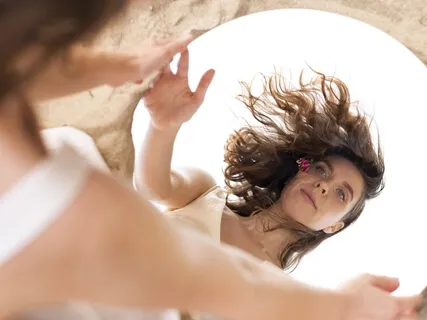 Se olhando nos olhos com o espelho.