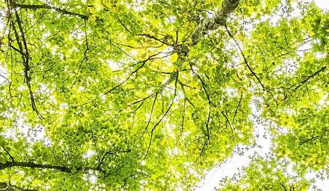 Observe o topo das árvores que se erguem para o céu.