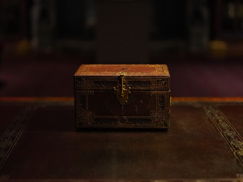 Chegando perto do baú você percebe os seus detalhes,
