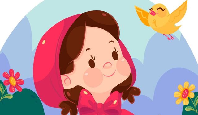 Chapeuzinho continuou sua caminhada alegre e feliz agora com seu amigo passarinho.
