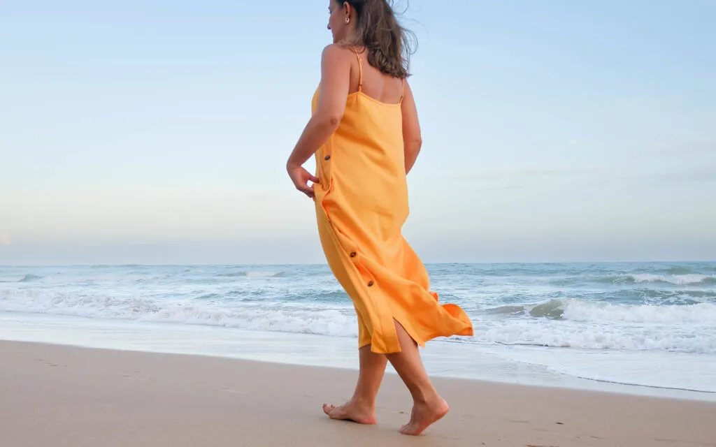 Você pode trazer a sua atenção novamente de volta às sensações nos pés enquanto caminha para trás.