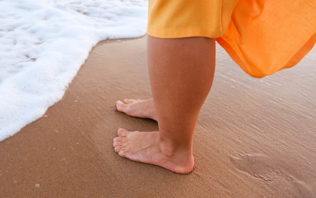 Sentindo a sola dos pés no chão.