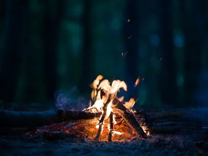 Visualize uma fogueira de chama intensa bem à sua frente.