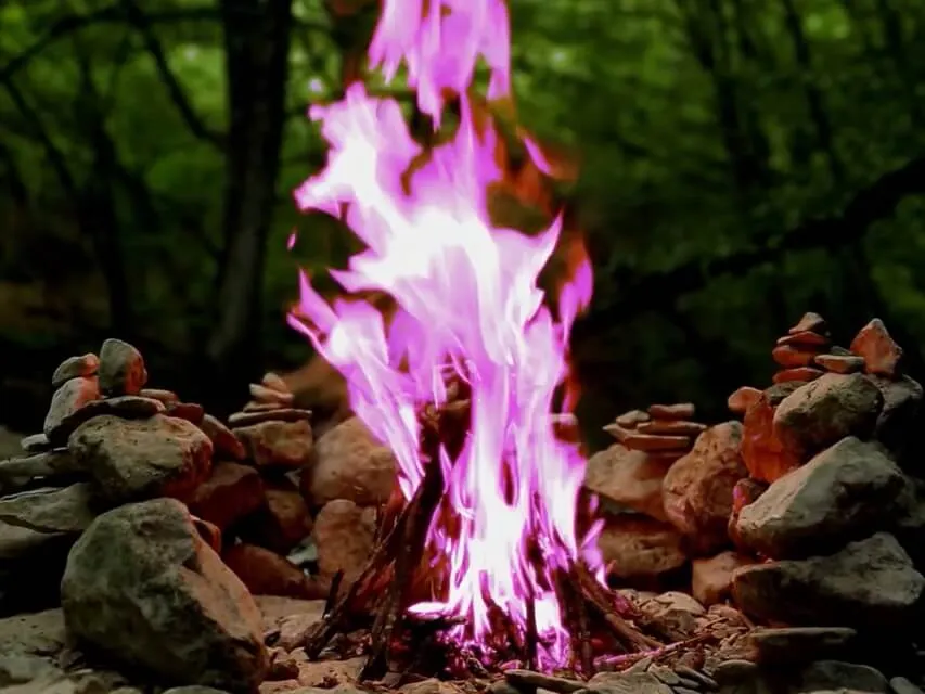 E agora visualize o fogo dessa fogueira se transformando em um fogo roxo,