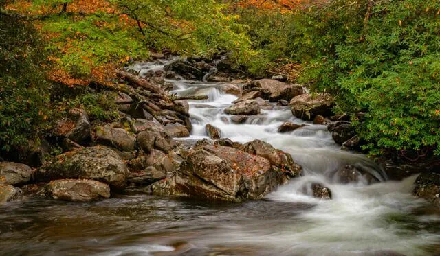 As folhas descendo pelo riacho também surgem e passam.