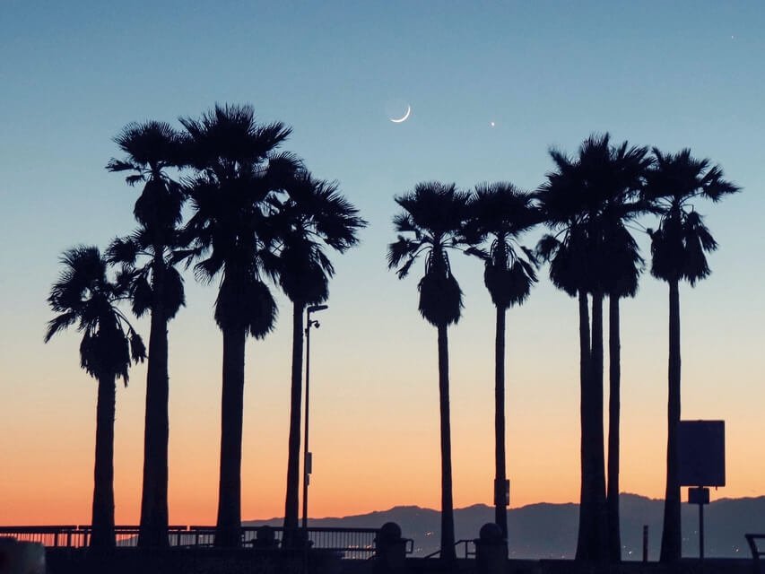 O sol já está se pondo nesse lugar e você pode começar a ver a lua bem suave querendo aparecer.