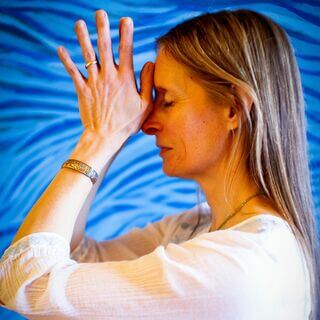 Your top hand on your forehead is drawing the blood flow forward in order to calm the nervous system down.