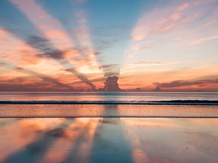 The sky becomes blue and you feel more and more relaxed and noticing how your thoughts are calming just like the sea.