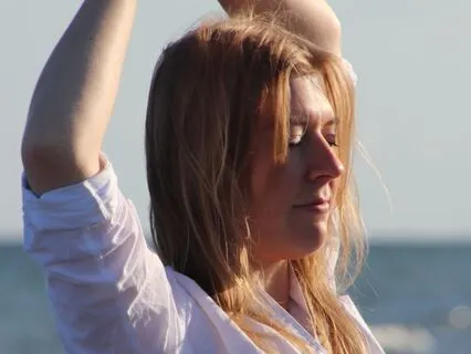 Leg gerne auch eine oder beide Hände auf Deinem Oberkörper ab und beginn von hier Deinen Fokus auf den Atem zu legen.