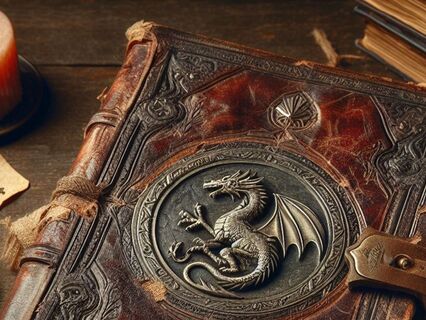 Cassie turned the heavy book over and saw that on the cover was a faded painting of a dragon with its wings stretched out.