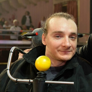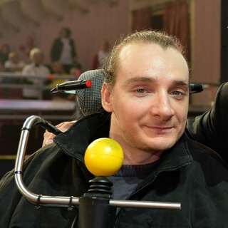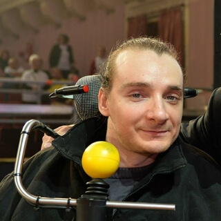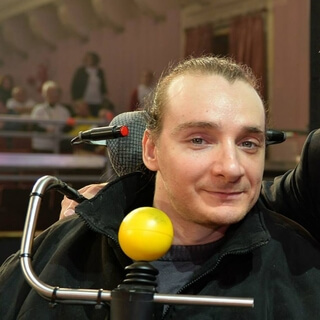 Maybe sitting on a chair,