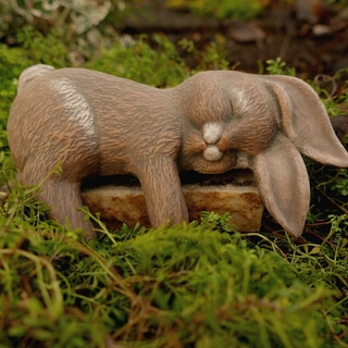 There's a little baby bunny hopping along the path.